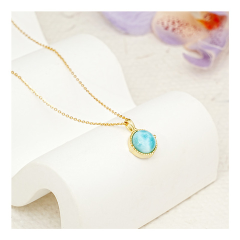 Thiết Kế Phong Cách Cổ Điển 925 Sterling Bạc Đá Quý Trang Sức Biển Màu Xanh Tự Nhiên Đại Dương Đá Cẩm Thạch Đồng Xu Mặt Dây Chuyền Vòng Cổ Unisex