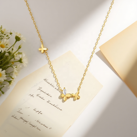 Phụ Nữ Của 18K Vàng Mạ 925 Bạc Vòng Cổ Với Đẹp Bướm Quyến Rũ Mới Thiết Kế Hợp Thời Trang 2 Xử Lý Đối Với Quà Tặng