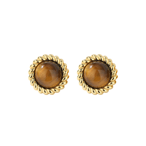 925 Sterling Silver Vintage Maillard Estilo Feminino Pequeno Hoop Brincos Populares Fried Dough Twists Tiger Eye Pedra Dangle Brincos