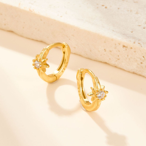 Classic Star Shaped Fine Hoop Brincos para As Mulheres 925 Sterling Silver com Cubic Zirconia embutidos ouro chapeado estilo coreano