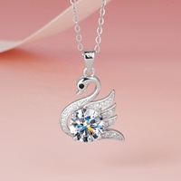 Dia dos Namorados Presente Jóias Daily Wear 925 Sterling Silver Hypoallergenic Zircon Diamante Animal Forma Cisne Pingente Colar
